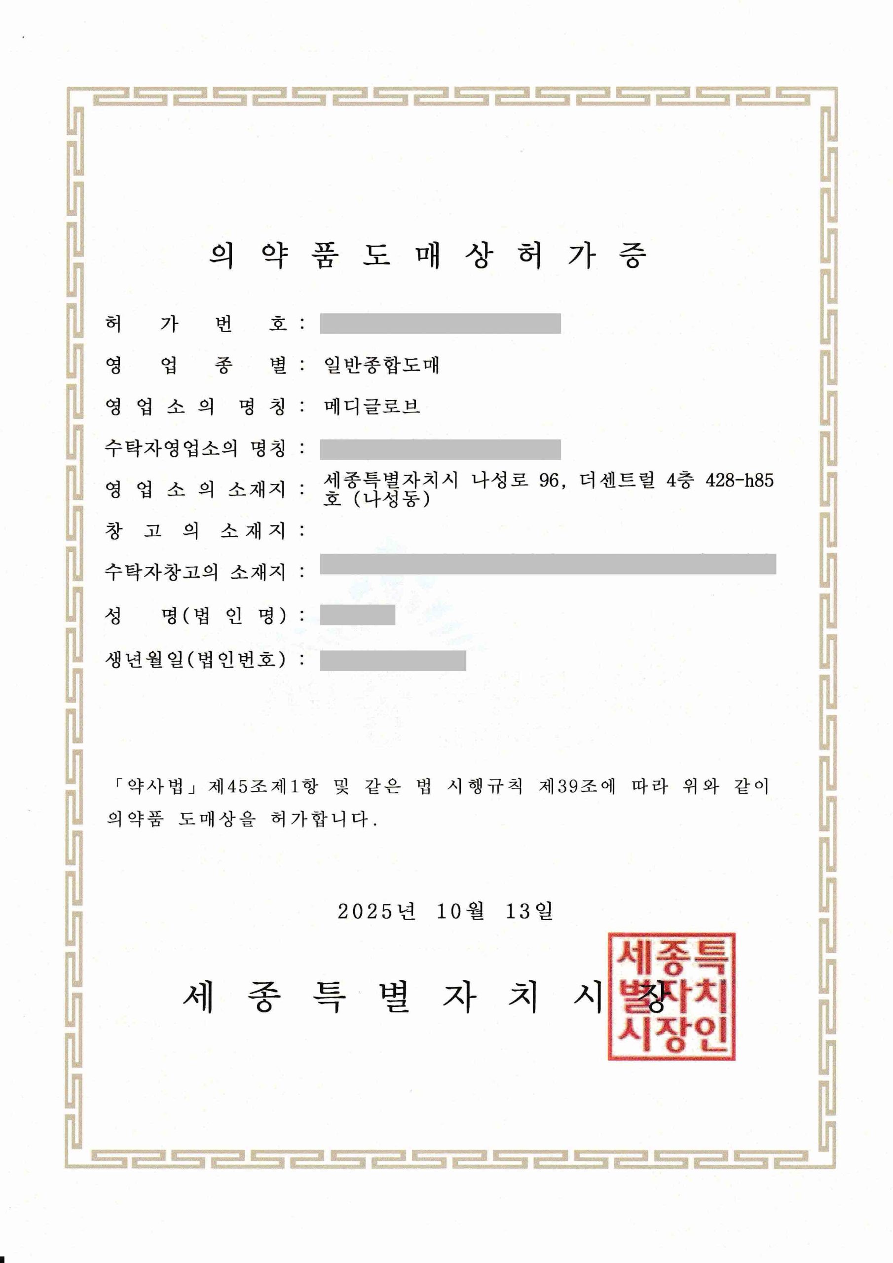 All regulatory licenses and certifications required for compliant healthcare distribution.